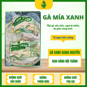 Gà tại trang trại được nuôi thả tự nhiên trên đồi rộng, ăn ngũ cốc, rau xanh, sâu canxi và thảo dược, giúp thịt gà chắc, ít mỡ, giàu dinh dưỡng. Nhờ nguồn nguyên liệu chất lượng này, Gà xanh Giang Nguyên có vị ngọt tự nhiên, kết hợp với các gia vị truyền thống như tiêu, tỏi, nước mắm nguyên chất, tạo nên món ăn thơm ngon hấp dẫn.